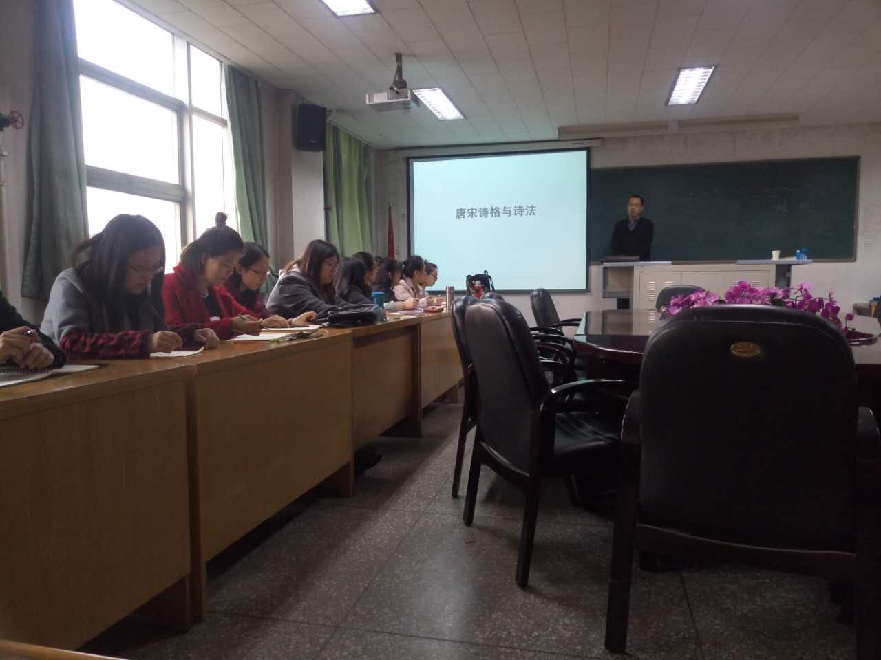 副教授、硕士生导师郭庆财老师在12号楼5层会议室作了题为“唐宋诗格与诗法”的学术报告。中国古代文学专业的研究生到场听取了此次报告。