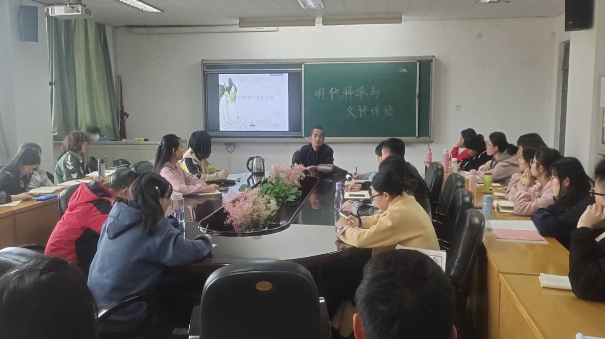 中国古代文学硕士生导师高建旺老师在12号楼512学院会议室作了“明代科举与文评话语”为主题的学术讲座,中国古代文学方向各年级的硕士研究生听取了讲座。