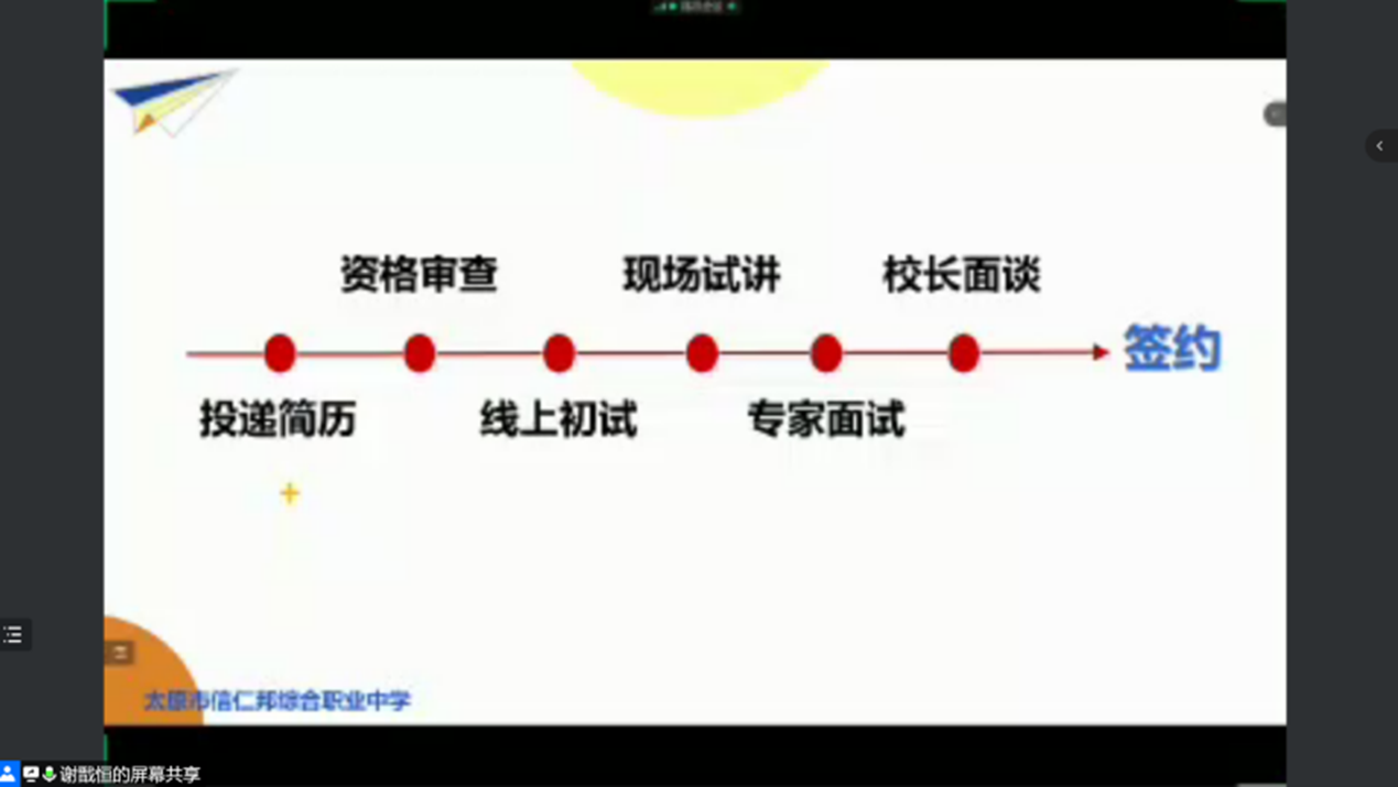 5月19日下午,真人漫画 特邀太原市信仁邦综合职业中学校的谢戬恒老师于线上开展“云端指途,就业有路”校园招聘宣讲会。