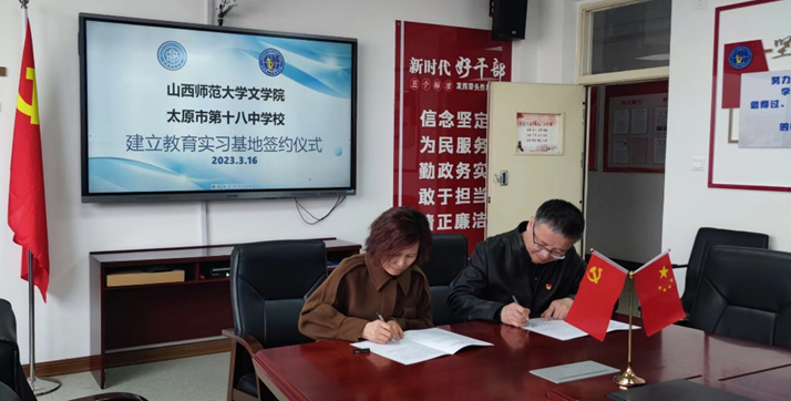 与太原市第十八中学校合作共建“汉语言专业实践教学基地”签约仪式在太原市第十八中学隆重举行。