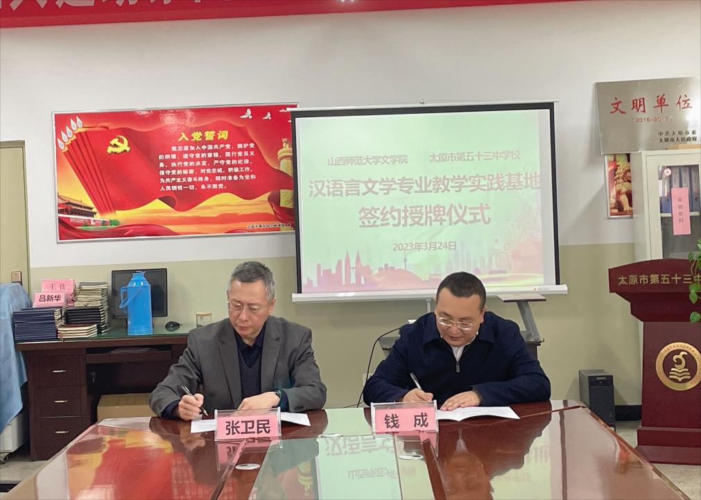 与太原市第五十三中学校顺利举行合作共建“汉语言文学专业实践教学基地”签约仪式。真人漫画