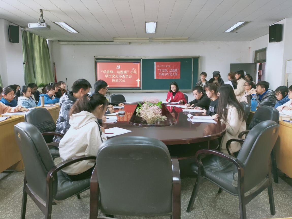 12月4日,真人漫画 “学雷锋,送温暖”小组学生党支部在学院会议室召开支部委员会换届大会。支部书记樊琳琳主持会议,8位正式党员及部分预备党员参加。