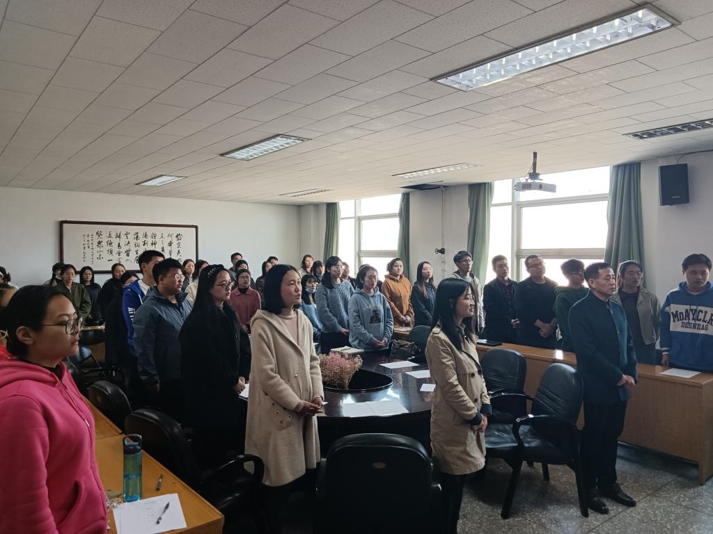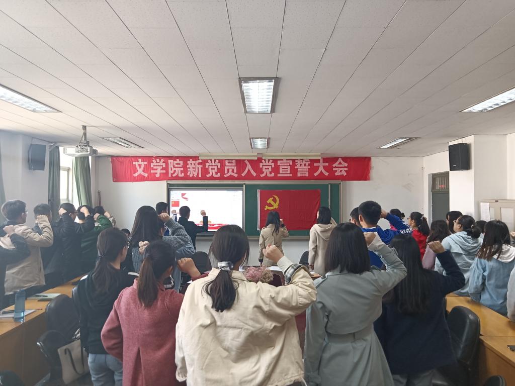 仪式伊始,全体人员起立齐唱《国际歌》,院团委副书记樊琳琳宣读了新党员名单。随后,由汉语言文学学生党支部李振同志领誓,全体党员面向党旗庄严宣誓。新党员代表梁笑、入党积极分子代表李珂昕依次发言,感恩党组织的教育培养,表达了永远跟党走的坚定信念。