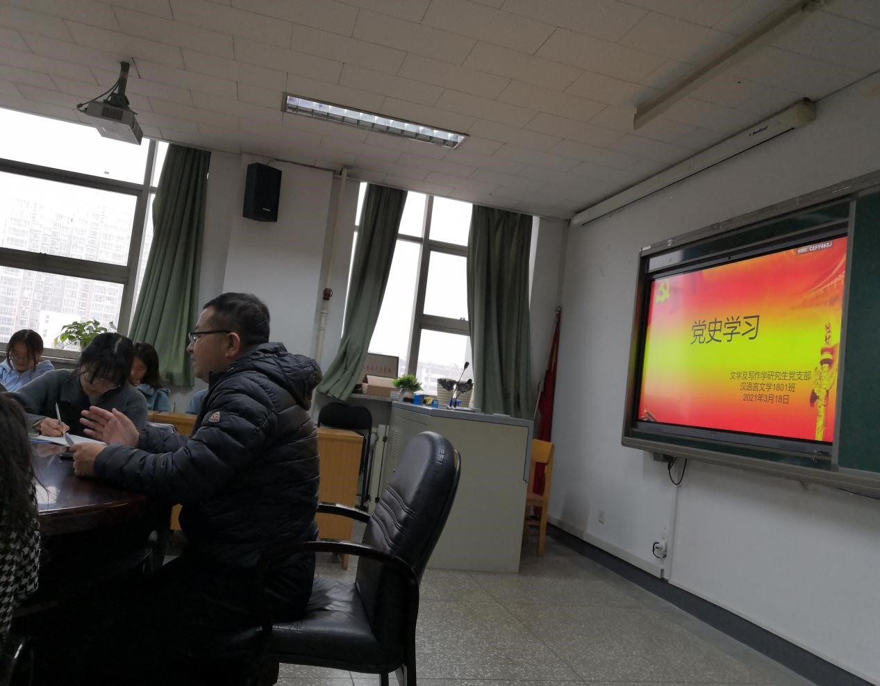 会议室开展“党史”学习活动。支部全体党员及汉语言文学1801班全体学生参加会议,进行集中讨论交流。