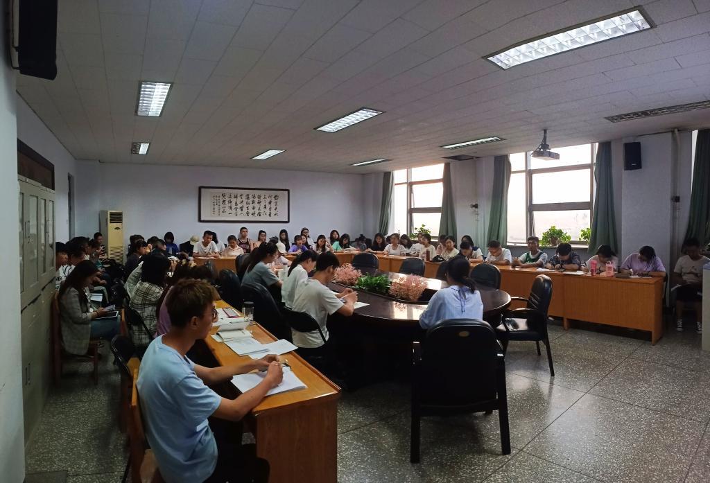 汉语言文学学生党支部在12512会议室召开以学习党的十九届五中全会精神和师德师风建设为主题的专题学习会议,支部全体成员参加。