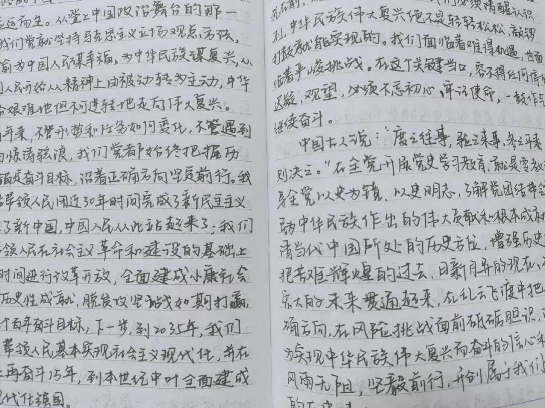 党员党史学习教育笔记本中出现频率最高的词。手写的方式,让烙刻于心的这五个字更加闪耀。党员们在学习笔记本中深情述说了对共产党深恩的赞颂,同时总结学习成果,进行自我反省,坚定理想信念。特别是最近几天,就有同志有感而发地写满了学习笔记本。也有的同志坚持每天记笔记、颂党恩,成为了雷打不动的习惯。百年奋斗的艰辛、历史功绩的宏伟、初心理想的伟大,尽在党员们的笔端。