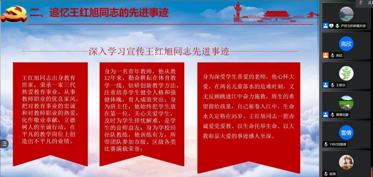 各党支部通过腾讯会议、学习强国等平台线上开展了“致敬教师楷模,做时代追光者”——向王红旭同志学习主题党日活动。