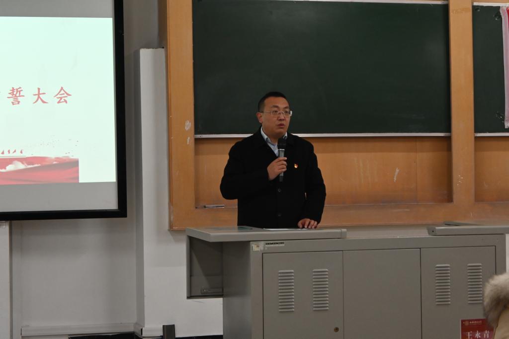 在3209教室举行新党员入党宣誓仪式。院党委副书记钱成、汉语言文学学生党支部书记侯昕昊、编辑出版学学生党支部书记何伟出席仪式,10位党员代表及75位新党员参加。院专职组织员王永青主持仪式。