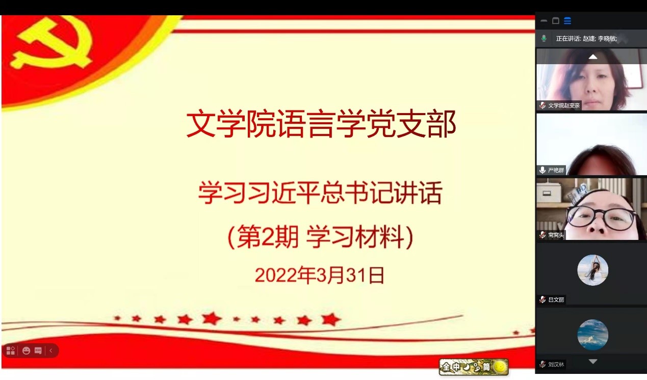 语言学党支部通过腾讯会议集体跟学校党委理论学习中心组学习材料,学习会由支部书记李晓敏主持,支部全体党员参加。