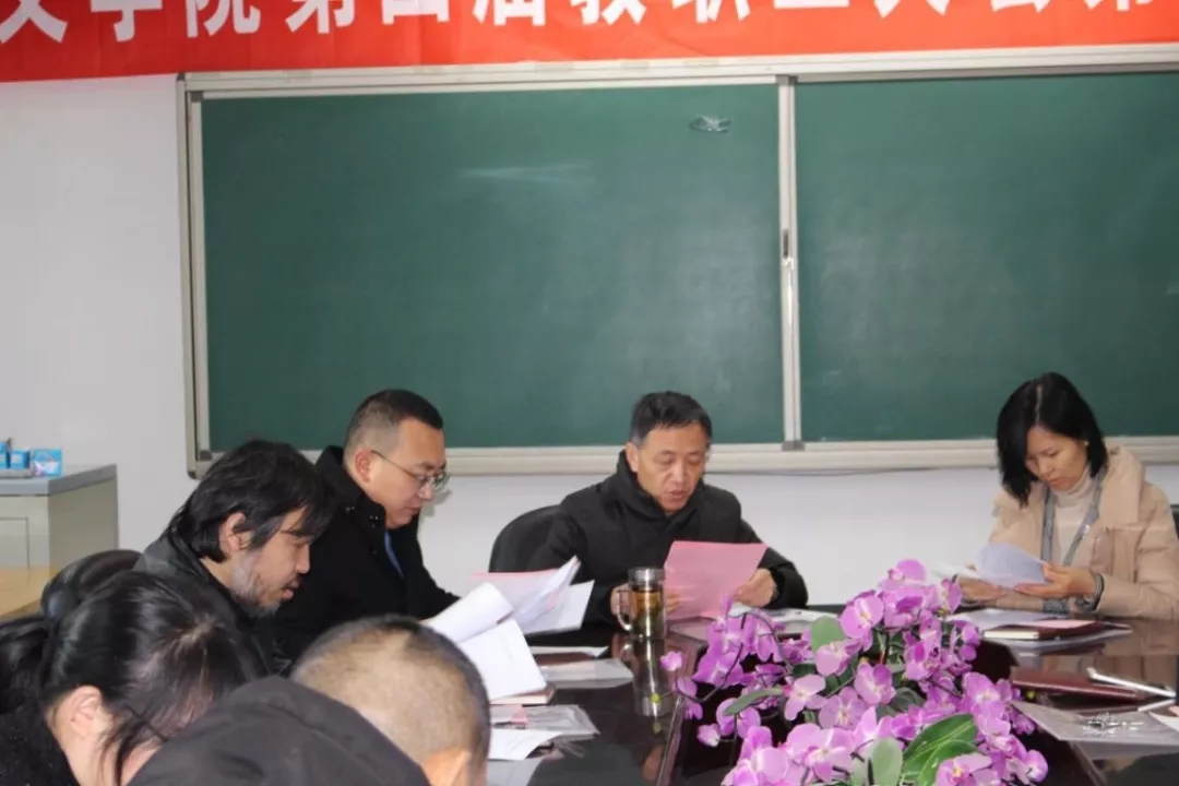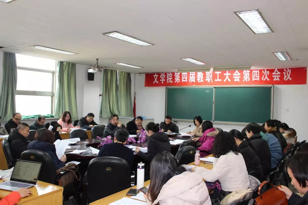 在学院会议室召开四届四次教职工大会。党委书记强汾生,院长赵变亲,党委副书记钱成,副院长栗永清,副院长李伟及全体教职工参加。