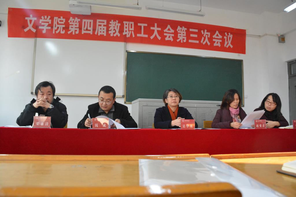 在12405教室召开了第四届教职工大会第三次会议。院领导吴华英、赵变亲、钱成、李伟、栗永清出席。