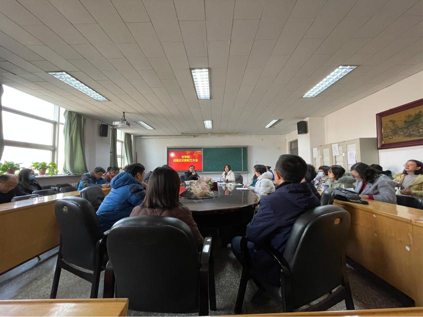 在学院会议室召开了四届五次教职工大会,全体教职工参加,党委书记强汾生主持会议。