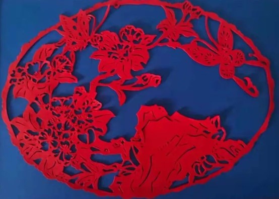 严艳群老师取一张红纸便剪出了百花盛开、万蝶齐舞;