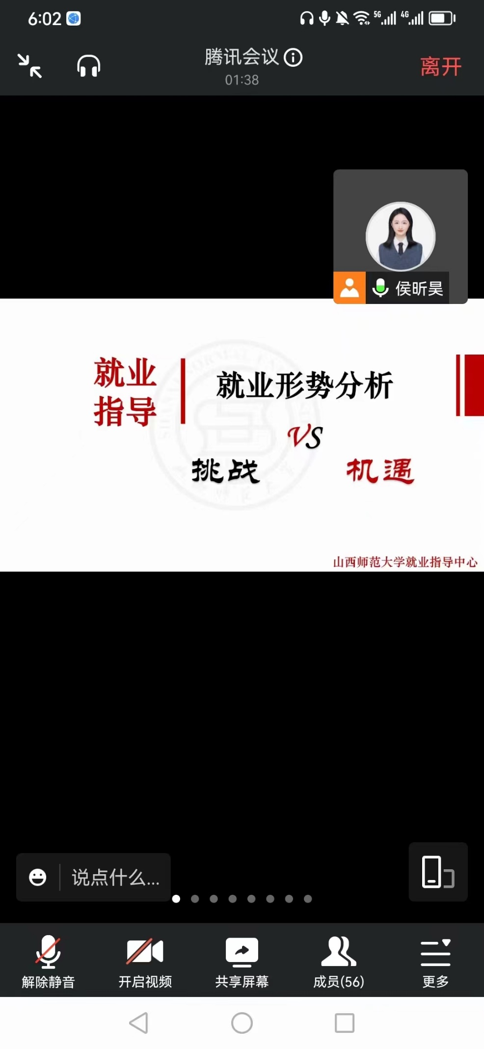 会议伊始,侯昕昊点明了本次就业指导讲座的目的和意义,并以“挑战VS机遇”为主题展开讲解。她从毕业生人数增长趋势、就业面临的结构性矛盾、疫情与国家政策等方面系统性地介绍2023届毕业生就业的整体形势,并对上述就业问题进行科学分析,精准梳理出其中的原因,让毕业生对当下的就业形势有更为深刻的认识。她倡导同学们面对严峻的就业情况要有勇气迎接挑战、有实力抓住机遇,调整就业期望,做好自我就业定位,使理想的求职目标可操作化。同时调整求职心态,提升就业创业能力,树立信心,积极就业。