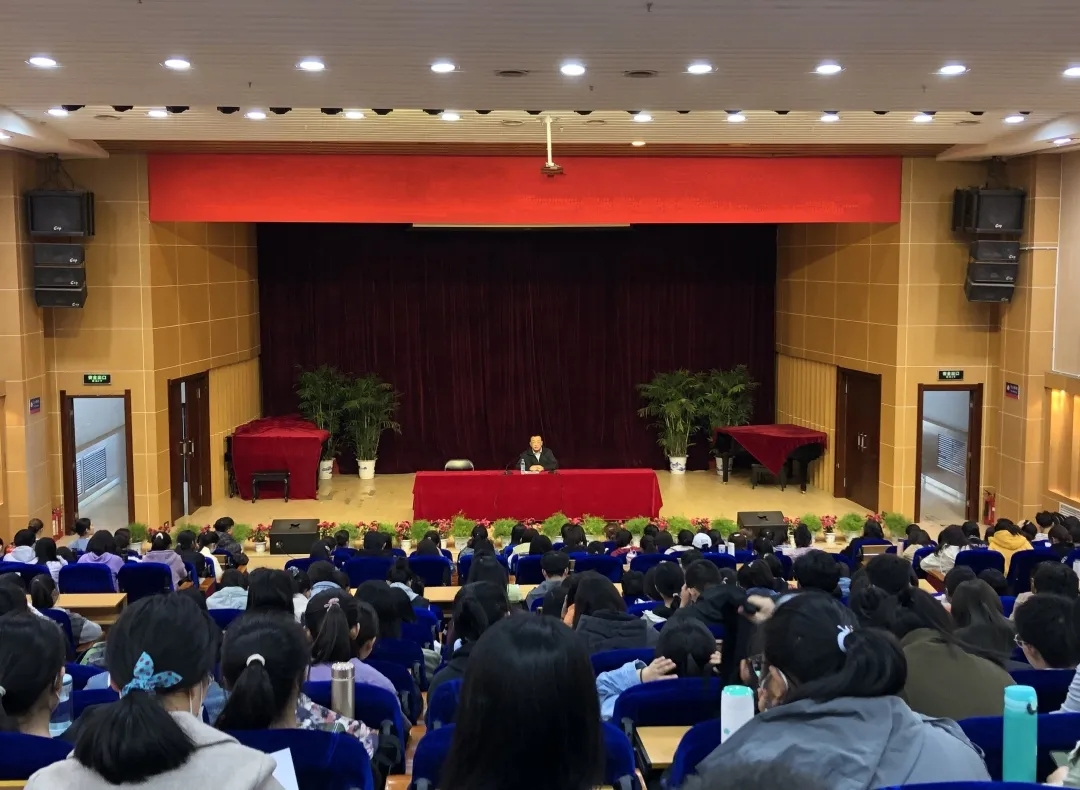 党委副书记钱成、副院长栗永清及郭庆财老师担任主讲。2020级新生全员到场参加。