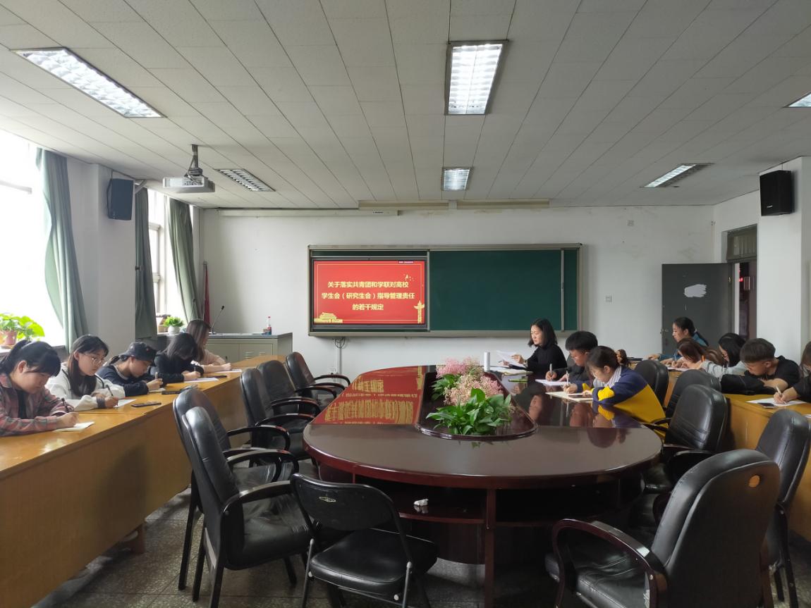 在学院会议室召开团委学生会工作人员作风建设专题会议,院团委副书记樊琳琳和团委学生会全体工作人员参加。会议由樊琳琳主持。