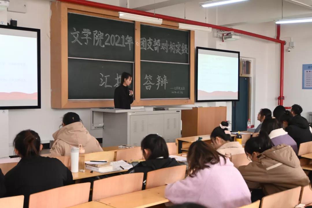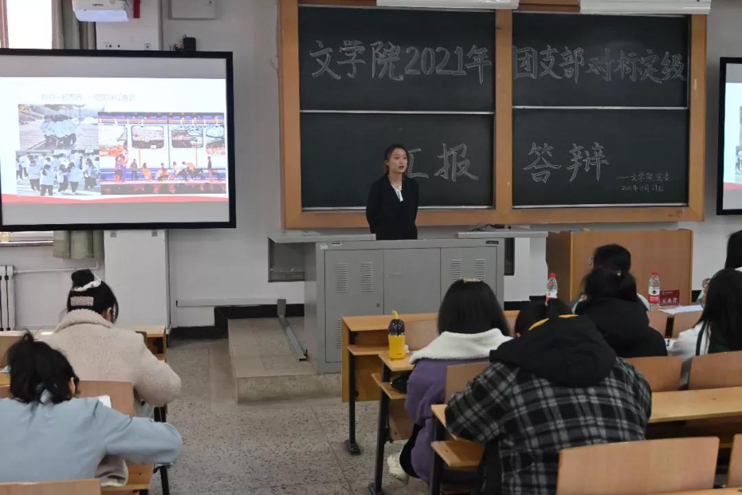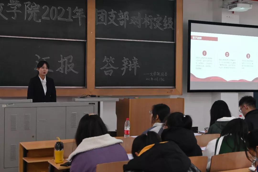 各班团支书采用“PPT演示+现场汇报”的方式,立足自身特色,围绕团支部班子建设、团员管理、组织生活、制度落实、作用发挥五大方面对本团支部工作成果进行展示。各班团支书围绕团员管理、团支部党史学习教育和“三会两制一课”展开重点讲述,对未来工作提出了细致规划和改进措施,展现了团结向上、锐意进取的精神风貌。