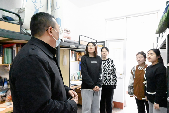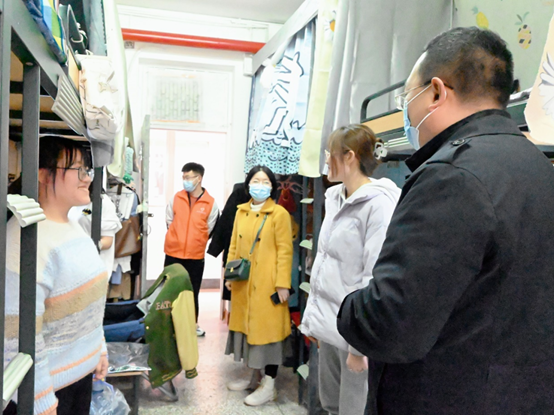 钱成强调:疫情防控,责任重大;疫情防控,人人有责。他督促同学们在日常学习生活中自觉佩戴口罩,减少外出次数,遵守学校防疫规定,不点校外外卖、错峰用餐等。在排查宿舍安全隐患之余,两位老师也对同学们的学习生活给予了指导,在肯定同学们学习热情的基础上,建议同学们做好学习规划,有问题及时与舍长、同学、辅导员、学院等沟通,共建校园良好学风。