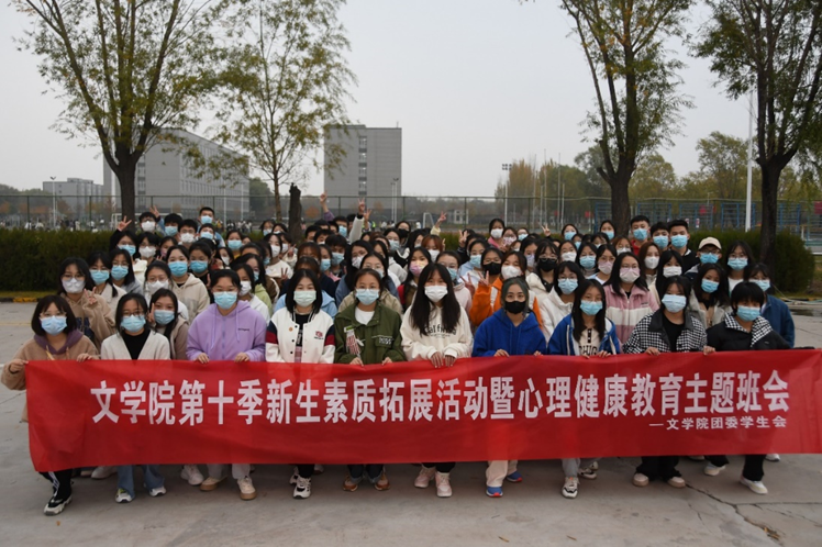 心理健康部组织大一新生分别于北区操场、南区操场开展“聚以初心新相遇,追攀更觉相逢晚”第十季素质拓展活动暨心理健康教育主题班会。29位素拓师及全体大一新生参与本次活动。