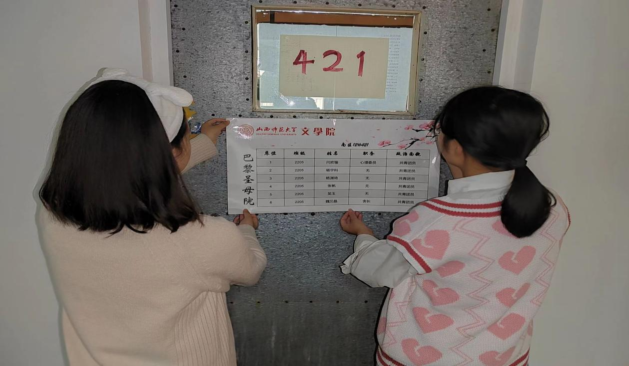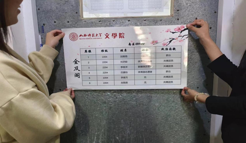 学生昂扬向上的精神风貌。11月6日,生活权益部负责人将打印好的门牌作品分发给各班生活委员,并组织真人漫画