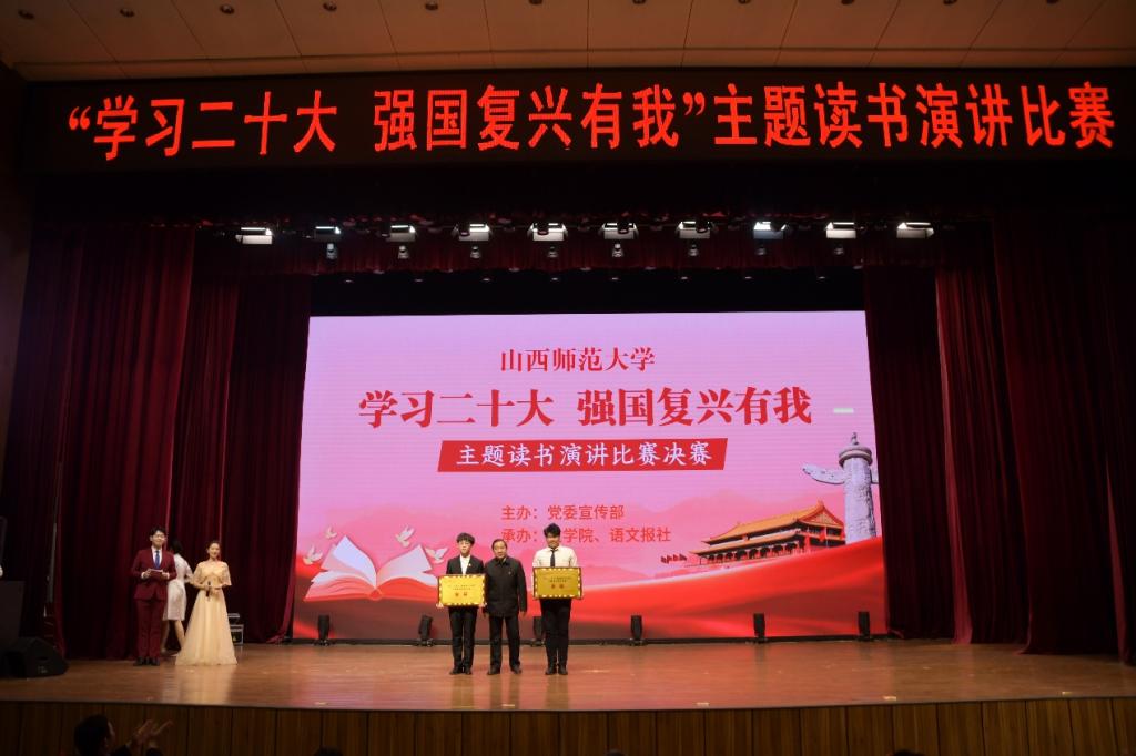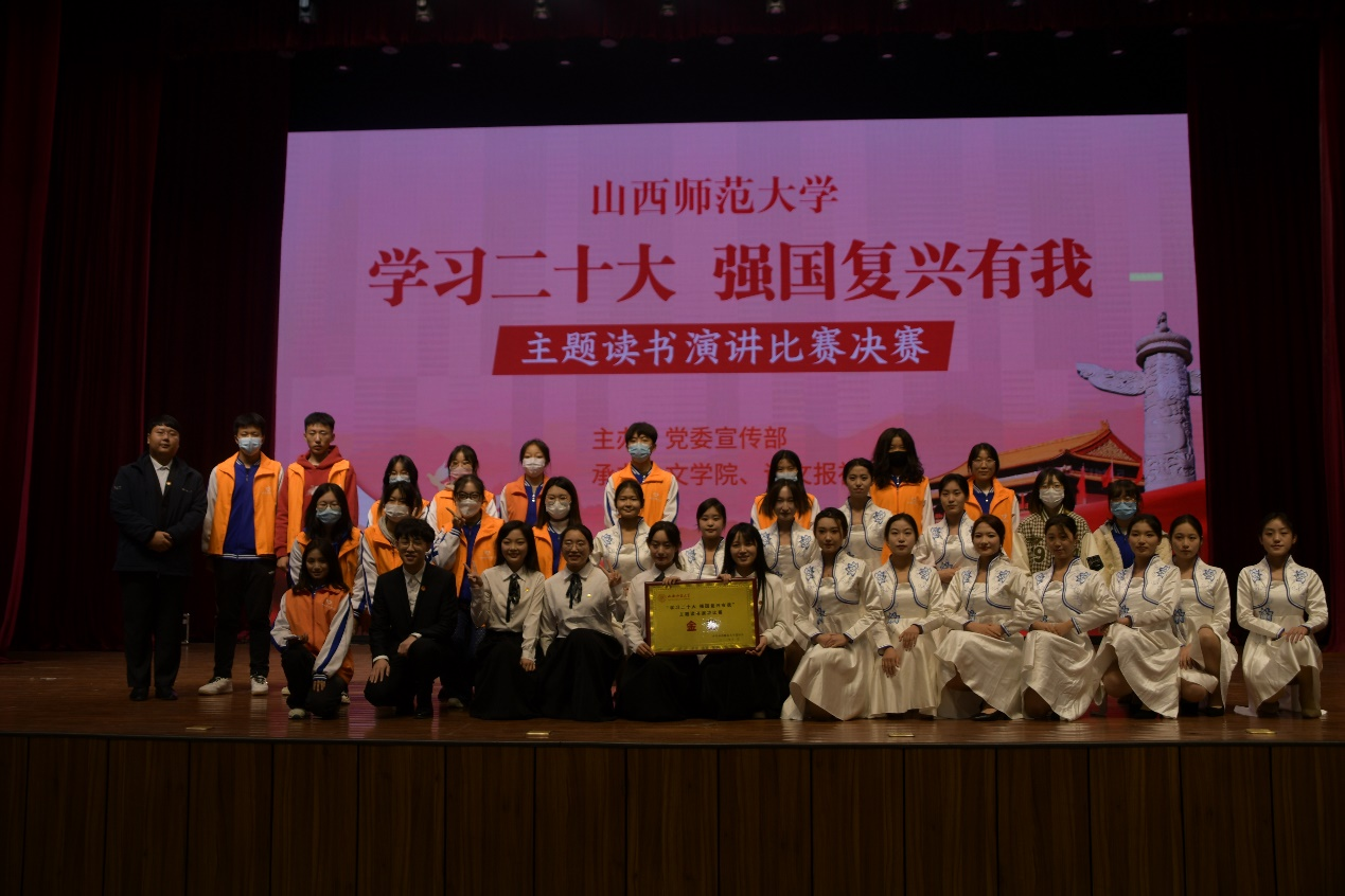 演讲队伍荣获金奖。此次主题读书演讲比赛决赛有助于引导同学们全面学习党的二十大精神,树立崇高理想,涵养浩然之气,不仅为广大学子提供了展示自我的舞台,更激励了同学们主动承担青年责任,展现出当代青年的独特魅力。
