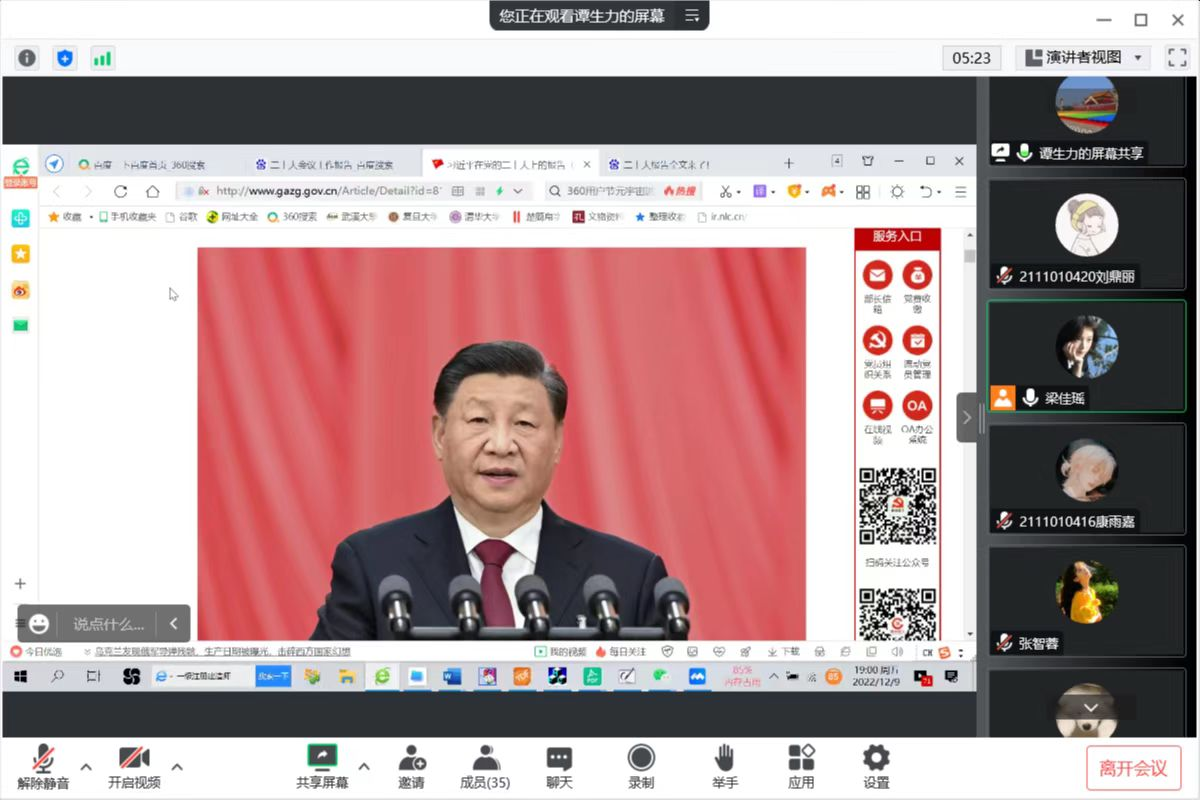 2104班于线上开展党的二十大专题学习会。本次会议由辅导员谭生力主持,2104班全体同学参加。