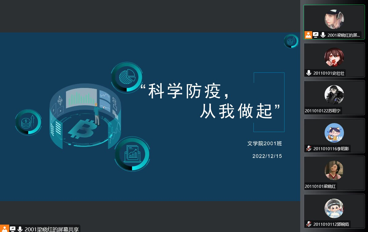 2001班召开“科学防疫,从我做起”专题学习会,会议由辅导员关黑拽主持,2001班全体同学与会。