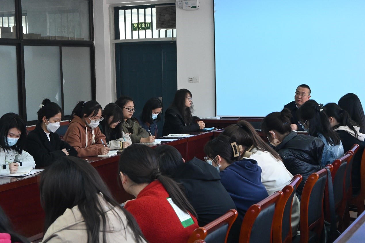 段俊以“推进文化自信自强”为主题,紧扣党的二十大内容与精神,解读了党的二十大对文化、文艺等方面的指示与要求。“文运同国运相牵,文脉同国脉相连”,她强调,要在教育过程中挖掘优秀传统文化基因,将文艺与大众结合,坚定文化自信;院学生会举办相关活动也要坚持以传承优秀传统文化为理念,创造性转化、创新性发展,举办更多富有文化色彩进行文笔创作的特色活动,培育同学们的社会主义核心价值观,努力为铸就社会主义文化新辉煌添砖加瓦。