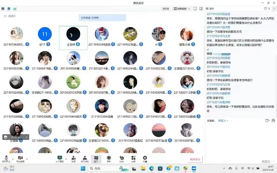 会上,两位学长结合自身考研经历从复试准备、往年复试内容及题型分析、复试流程、注意事项、专业知识的问答、应试技巧和心态的调整等方面进行了详细的介绍。针对考研复试中的常见问题和面对提问时应当如何随机应变,两位学长毫无保留地向同学们分享了自己的备考经验,鼓励同学们树立信心,以平和冷静的心态面对接下来的复试,并鼓励同学们积极拓宽调剂信息渠道,整合多方资源,注意在多个平台紧密关注考研复试的消息,并在报考学院官网核实信息的准确性,以积极向上的心态备考调剂,顺利拿到理想院校的研究生录取通知书。