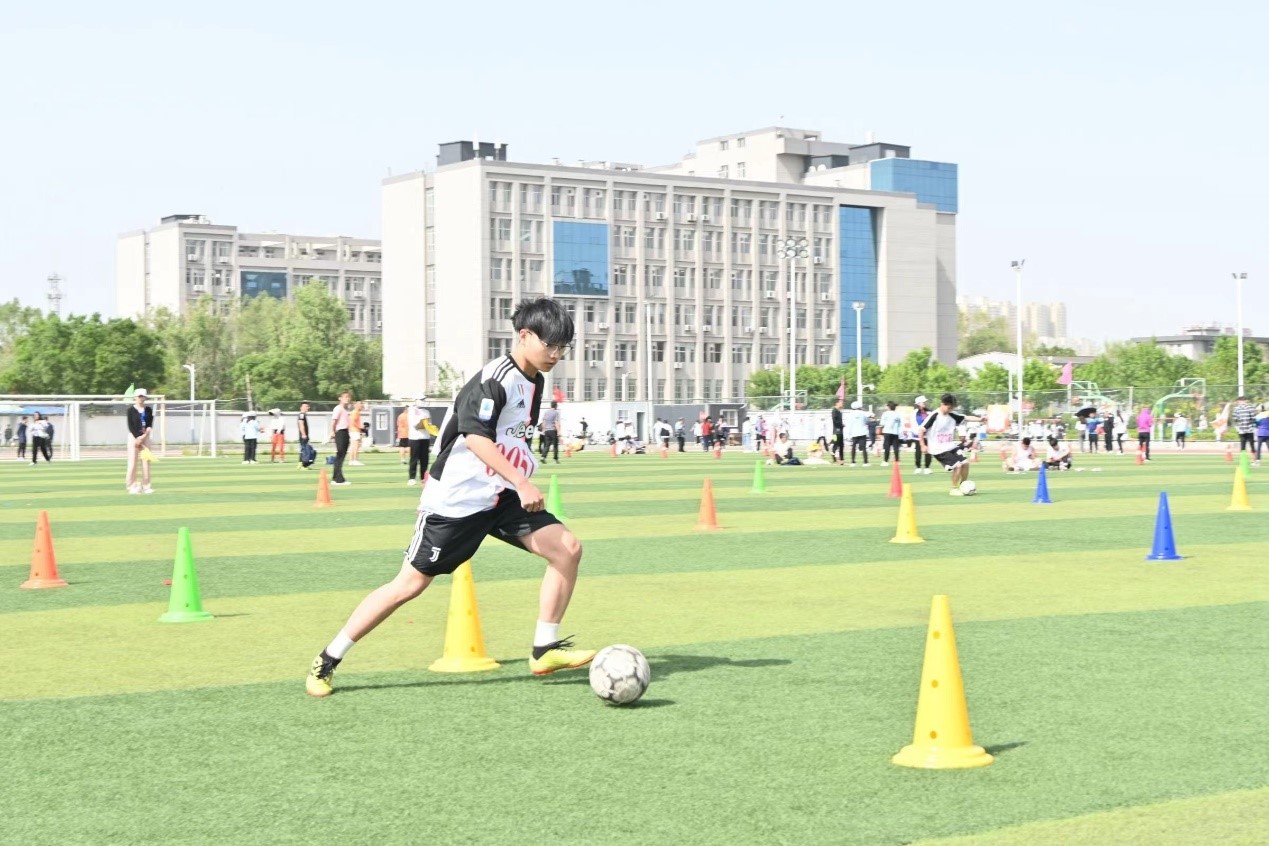 这是一场考验反应、速度和团队协作的比赛。紧握双手,数米长的横杆连接起五名同学团结的心;赛道猛奔,大步向前的足迹印证着少年“敢问天地试锋芒”的自信与张扬。