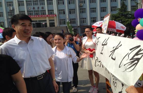 活动中,礼仪部的队员们热情地迎接了前来视察的学校各级领导,现场的学生干部一一回答了学校领导的有关询问,师生互动良好。尤其是学院展区那幅醒目的“阳光生活·和谐人际”的书法作品与内容,得到了到场的校领导王心平副书记、郝勇东副校长的连连首肯,给予了现场的学生干部们以极大的鼓舞。