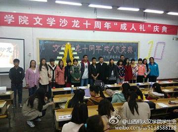 学生会学习部主办的文学沙龙十周年“成人礼”主题庆典活动在05103教室成功举办。出席本次活动的嘉宾有2014级新生辅导员李奎等老师,学生会主席团及各部部长。真人漫画