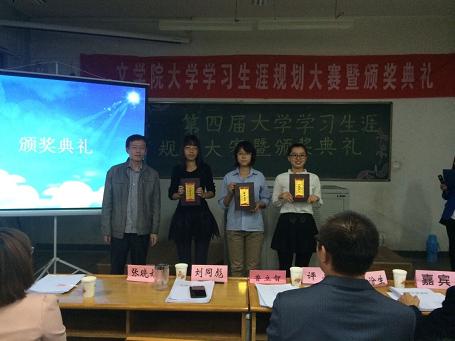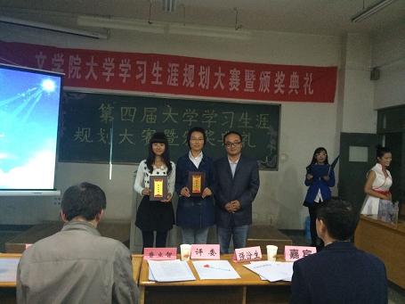 经过统计,决赛结果最终确定,主持人宣布了获奖者名单。其中,优秀奖获得者为郭晓红、刘小宁、张凯蓉、梁培菁。三等奖颁发给了张明娜、程婧华、刘丹三位同学,冀肖冰、郝静怡分享了二等奖,冠军则由决赛中唯一的男选手刘钰斩获。嘉宾和评委老师先后为获奖选手颁发证书和奖品,并与选手合影留念。至此,本次大赛圆满落幕。规划在纸上,落实靠行动。参赛选手和广大同学深知:学习生涯规划比赛只是暂时的,而按照规划坚持落实并不断完善直至目标的实现,则是同学们未来几年大学生活的主题。