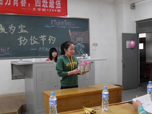1204班和1303班则以“勤俭节约”为切入点,集中大家智慧,变废为宝,让同学们在动手的欢乐中体会到节约的意义。