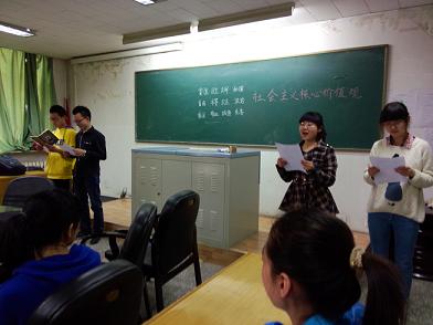 1201班以诗朗诵和抒写社会主义核心价值观主要内容为学习形式,激发班内同学的参与热情。