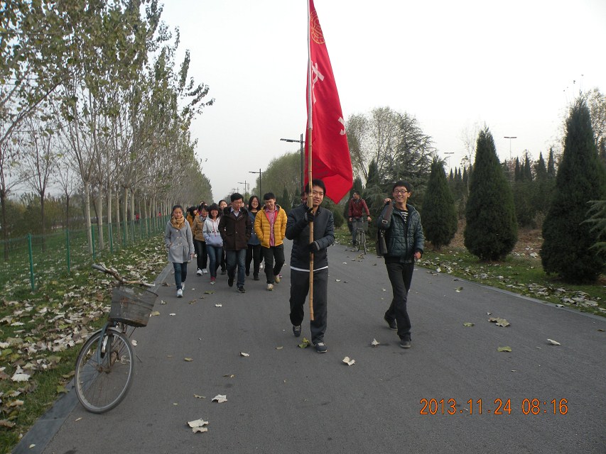 初冬,一个星期日的早晨,当人们在凛冽寒风的陪伴下,不得已地奔向上学或是上班目的地时;当大家在周末的早晨,蜷缩在被窝里享受美梦之时,距师大校园不远处的汾河岸边,却出现了一道亮丽的风景线——一支近两百人的大学生毅行队伍在学院院旗的指引下,奔走在汾河岸边。