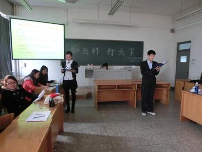 班级建设的最终目的是提高同学们的综合素质。为落实这一任务,各班积极创新,分别开展了“知百科,行天下”百科知识竞赛、“博学雄辩” 班级辩论赛,“阳光体育,阳光心态”体育锻炼、“携手青春,拥抱你我”大学生素拓、“巧手装扮温馨家园”、“读书明志”等形式多样的活动。这些活动,不仅把同学们带出了枯燥的课本,而且将同学们带入了一个充满趣味性、灵动性和智慧性的德智体美共同发展的环境,有效地促进了学生的综合素质的提高。