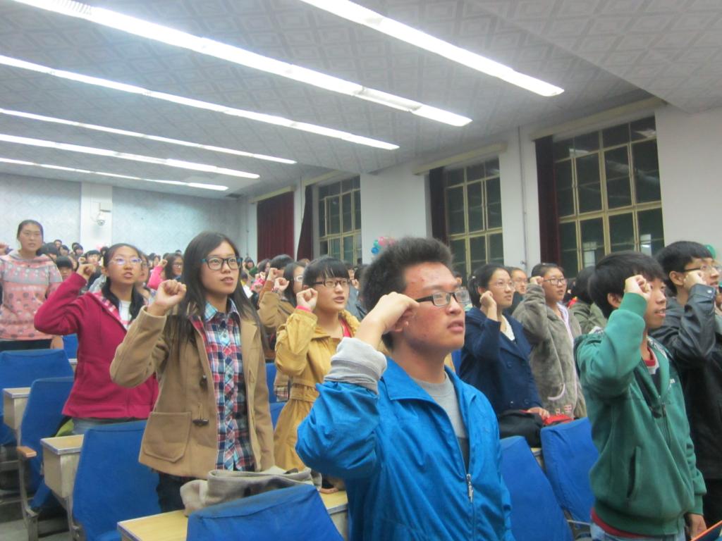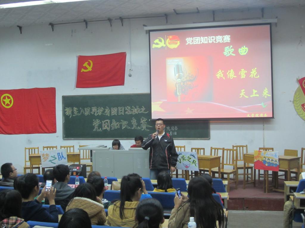 学子的博学多才与青春朝气,表现了他们对党团知识的熟练掌握程度。接下来的腾讯微博互动抽奖及歌曲演唱环节极大地活跃了现场的气氛,由1302班与1303班团支部代表组成的蓝色风暴队一路领先,极具优势,最终摘得桂冠。