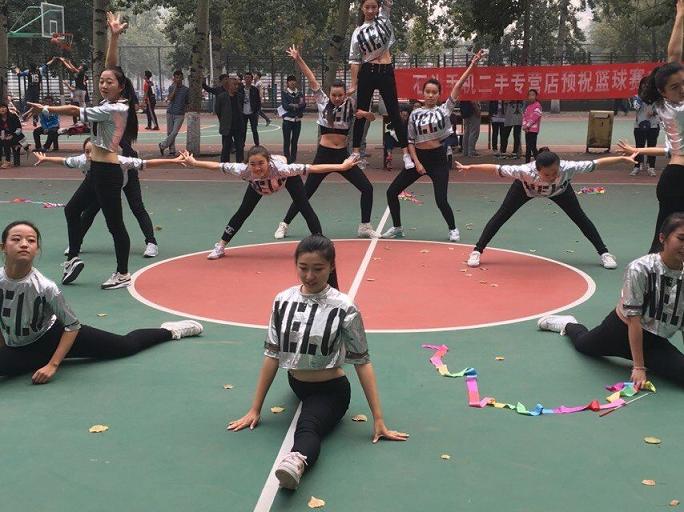 啦啦操队特为比赛表演助兴,她们靓丽的舞姿为球赛增添不少色彩,赛场的紧张气氛也因此褪去些许。