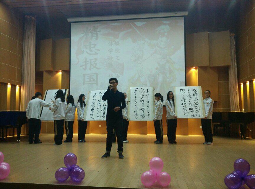 生活部的“古装大戏”《三顾茅庐》用现代方式再现历史,服装亮眼,台词幽默,赢得场下观众的阵阵喝彩。“映山红遍千层浪,携卷江澜万丈高,血滴刺荆报国心,肝胆相照岳家魂”。传媒学院姚王臻一曲《精忠报国》与书协主席聂泽民现场书写的《满江红》完美结合,将小家小爱推向家国大爱,尽显壮志豪情。体育学院青协带来的《中华武魂》绝没有辜负他们获奖无数的盛名。热血青年们一招一式都铿锵有力,自带音效的经典武术展示,引得全场尖叫、掌声不停!