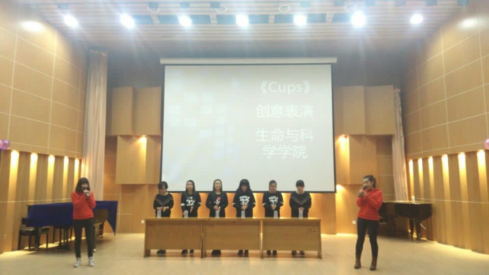 主持人宣布晚会开始后,外国语学院两女生华丽舞动《somehow》,以活力十足、引发观众喝彩的舞姿,将晚会引入了第二篇章“Observant用心爱”。爆笑小品《超幸福鞋垫》,由数计学院的两位“夜市小商贩”倾情推荐能让人幸福的鞋垫,“小商贩”的销售“业绩”在爆表!观众的欢笑声也随之爆棚!会意的笑声过后,动人情歌描绘着爱情的玄妙,又将全场带入暖心氛围。生命科学学院青协的八位姑娘带来创意秀,她们将水杯作为乐器玩出新高度,配合着轻快的歌声,一起将晚会推向一个小高潮。真人漫画
