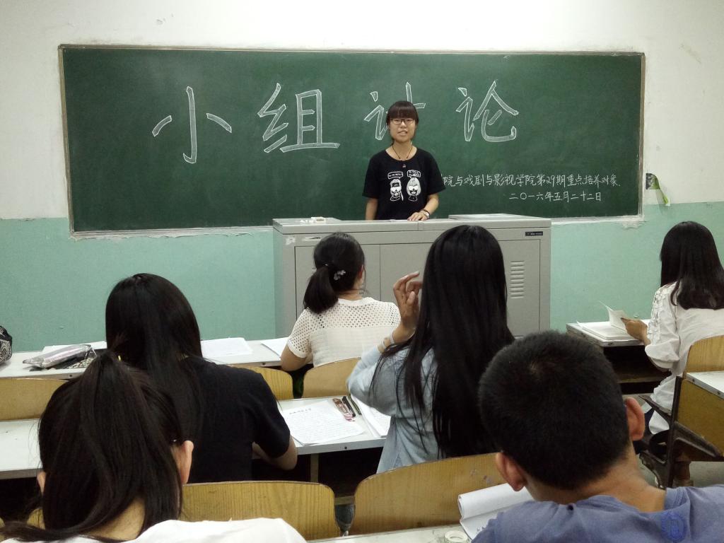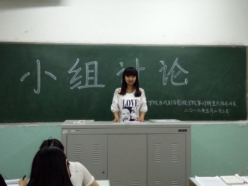 及戏剧与影视学院参加学校党校第29期重点培养对象培训的全体成员,于2016年5月22日在4号楼205教室进行了以“四讲四有”为主题的小组学习讨论。