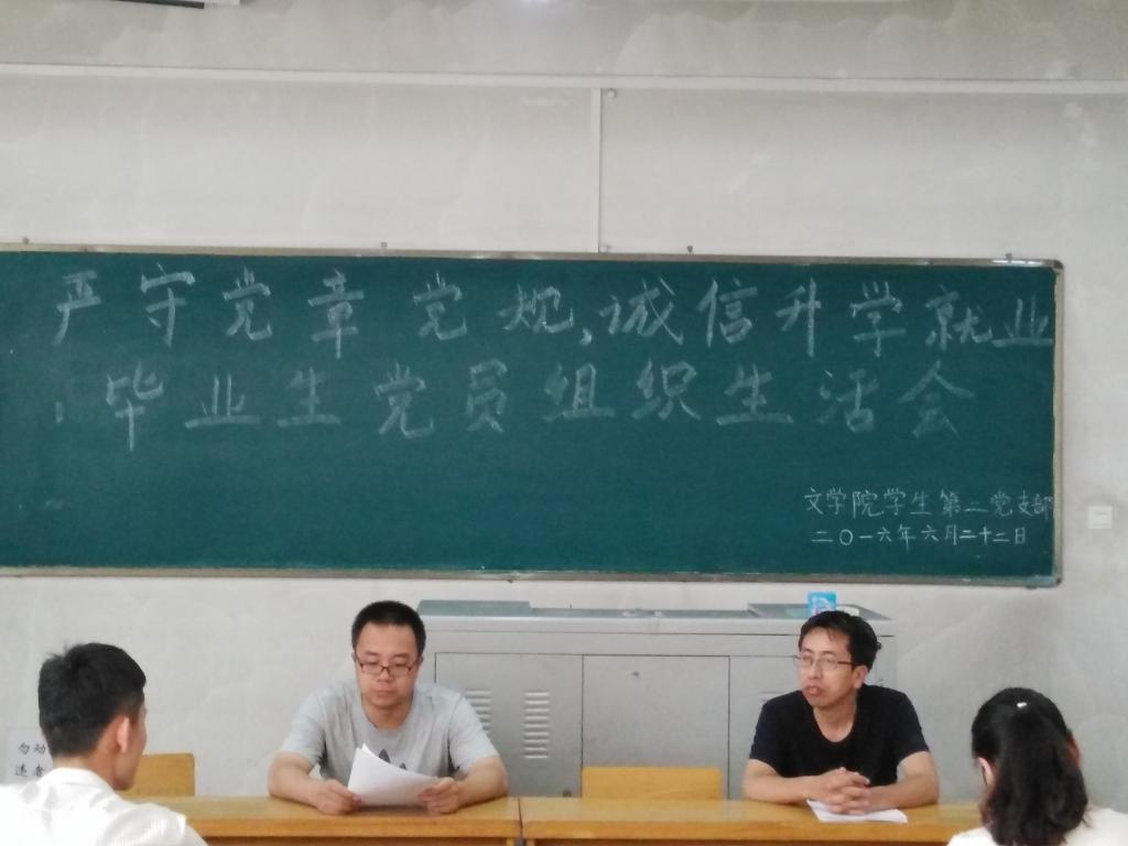 本次会议以“严守党章党规,诚信升学就业”为主题,对即将走上工作岗位和继续深造的毕业生党员提出要求和希望。在会上,老师们对这些毕业生党员都作了积极的要求,希望他们今后步入新的人生道路时,能够牢记自己是一名光荣的党员,严格遵守党的纪律准则,传承党的优良作风和传统,树立崇高的道德追求,养成良好的纪律自觉,认真履行义务,正确行使权利,严于律己,宽以待人,坚持原则,与人为善,展示出一个共产党员的风采,在新的生活环境和工作环境里积极向上,刻苦钻研,努力奋斗,为自己赢得更好的未来,塑造出我们学校的良好形象。