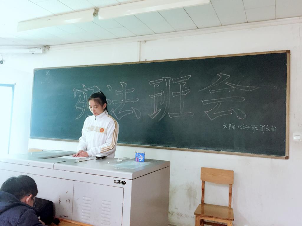 1604班在12108教室,开展了以“学宪法”为主题的班会活动。此举意在贯彻落实《青少年法制教育大纲》,推进依法治校,宪法教育,丰富教育形式,是深化2016年“国家宪法日”的学习宣传教育活动。