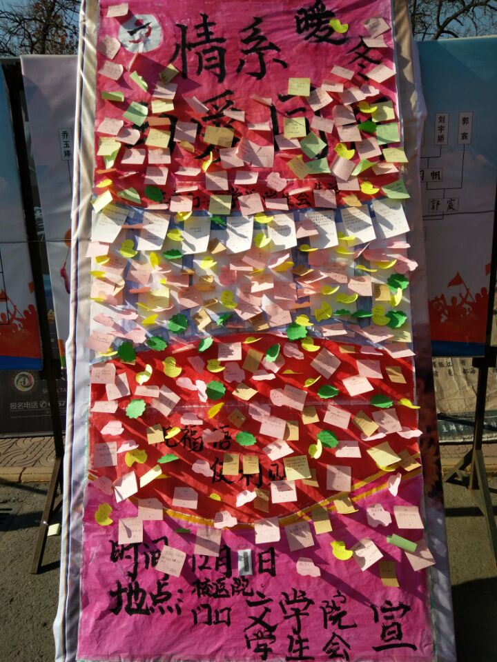 学生会生活部特于12月1日中午在校医院门口举办了第五季“情系暖冬,与爱同行”暖冬活动。
