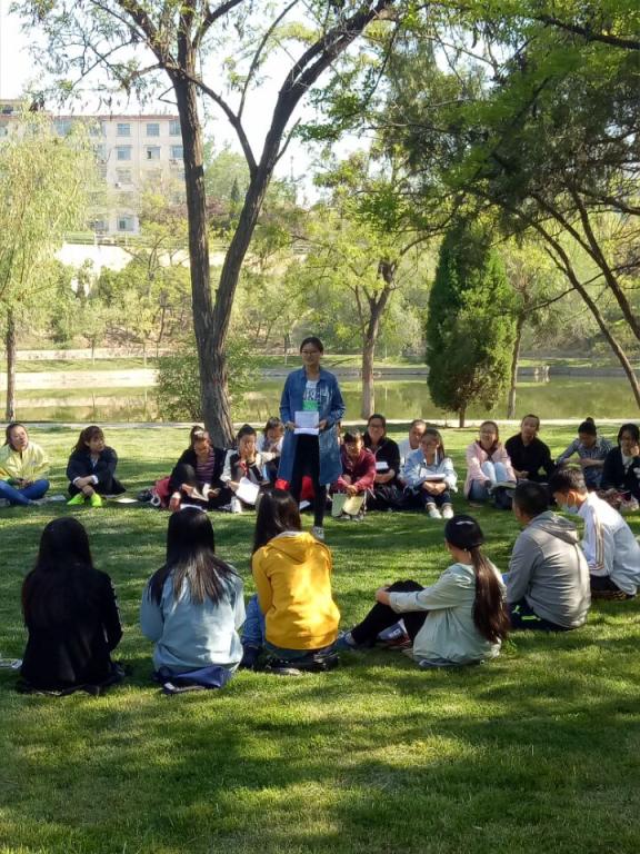 1602、1603班辅导员、副教授李晓敏老师与同学们在草坪上畅谈阅读心得,活动气氛轻松愉快,同学们收获颇丰。