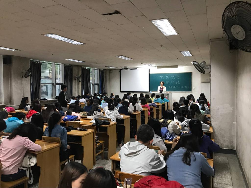 1501、1502班在12106教室开展了以“诚实守信、遵纪守法”为主题的班会,两班全体同学参加,辅导员吴华英老师出席并主讲。班会主要内容包括增强学生的诚实守信、遵纪守法意识,强调安全问题以及传达学校爱国主义教育管理新制度等。