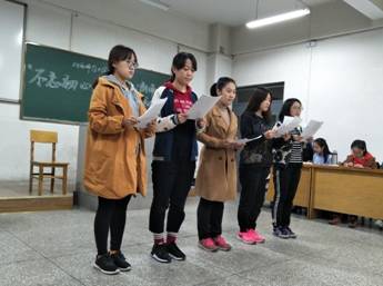 学生会文艺部在12208教室举办了以“不忘初心、牢记使命”为主题的朗诵比赛。真人漫画