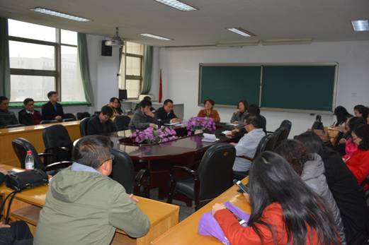 在学院会议室召开全体教职工大会,会议由院党委书记吴华英主持。