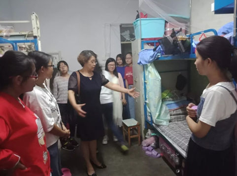 9月8日下午,院党委书记吴华英、院长赵变亲、党委副书记钱成、副院长栗永清等学院领导以及2018级各班辅导员同团委学生会干部深入新生宿舍进行走访慰问,给新同学们送去了诚挚祝福,叮嘱同学们在大学期间更要学会学习、学会生活,舍友之间要相互帮助,相互理解,尽快适应大学生活,更好更快地转换新角色。
